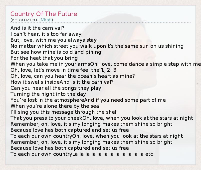 А как ты думаешь, о чем песня "Country Of The Future" ?