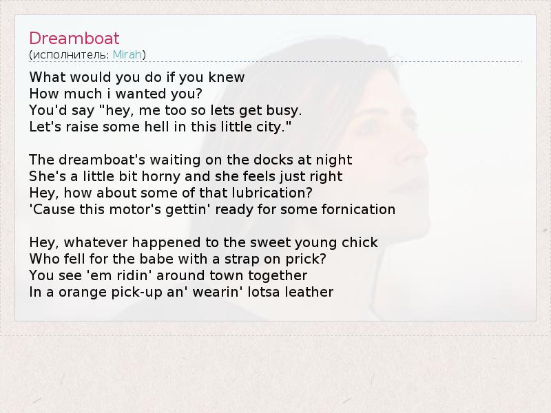 А как ты думаешь, о чем песня "Dreamboat" ?