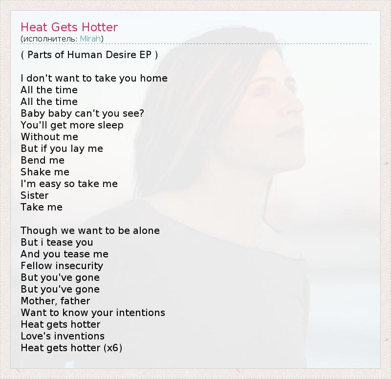 А как ты думаешь, о чем песня "Heat Gets Hotter" ?