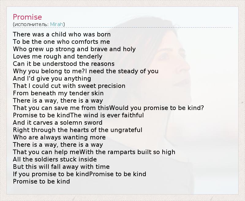 А как ты думаешь, о чем песня "Promise" ?