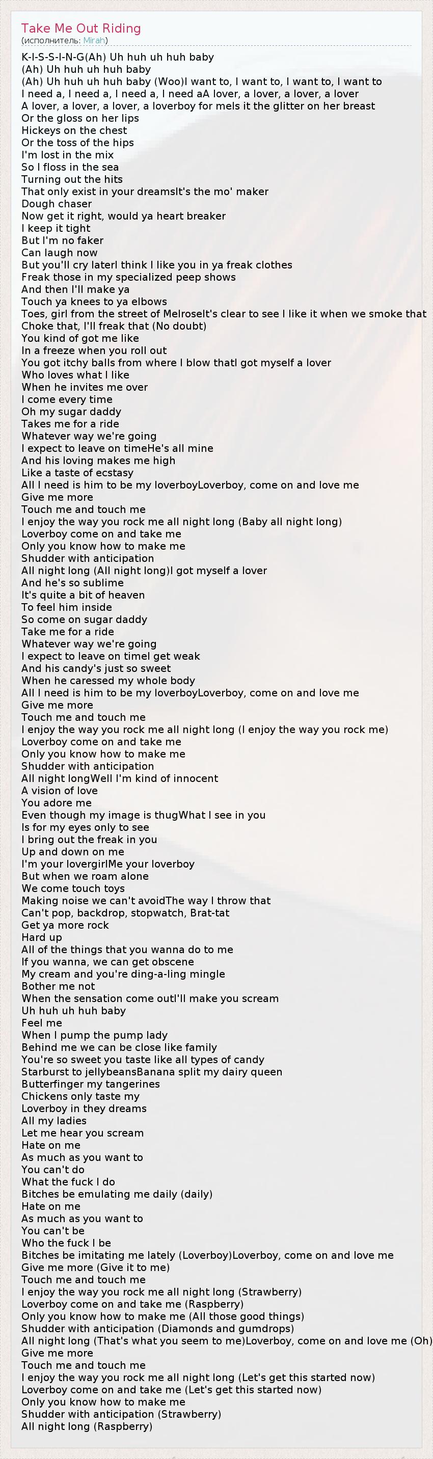 А как ты думаешь, о чем песня "Take Me Out Riding" ?