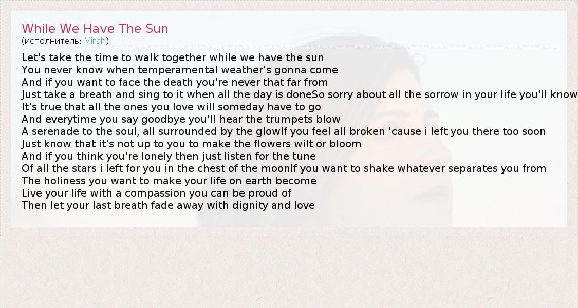 А как ты думаешь, о чем песня "While We Have The Sun" ?