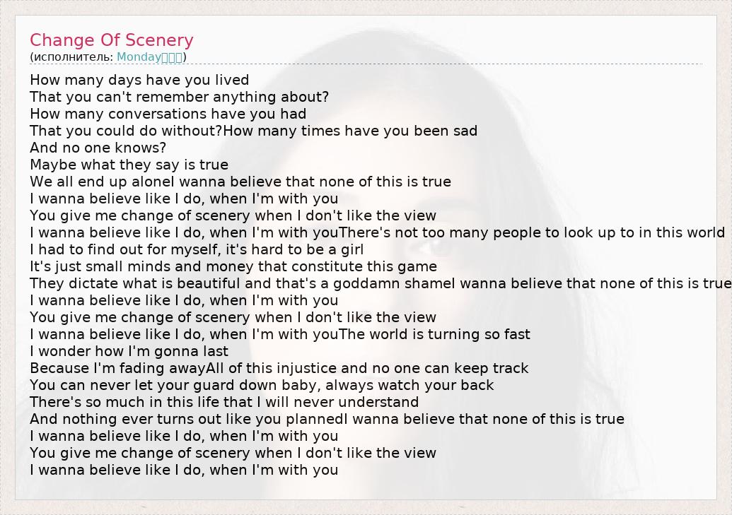 А как ты думаешь, о чем песня "Change Of Scenery" ?