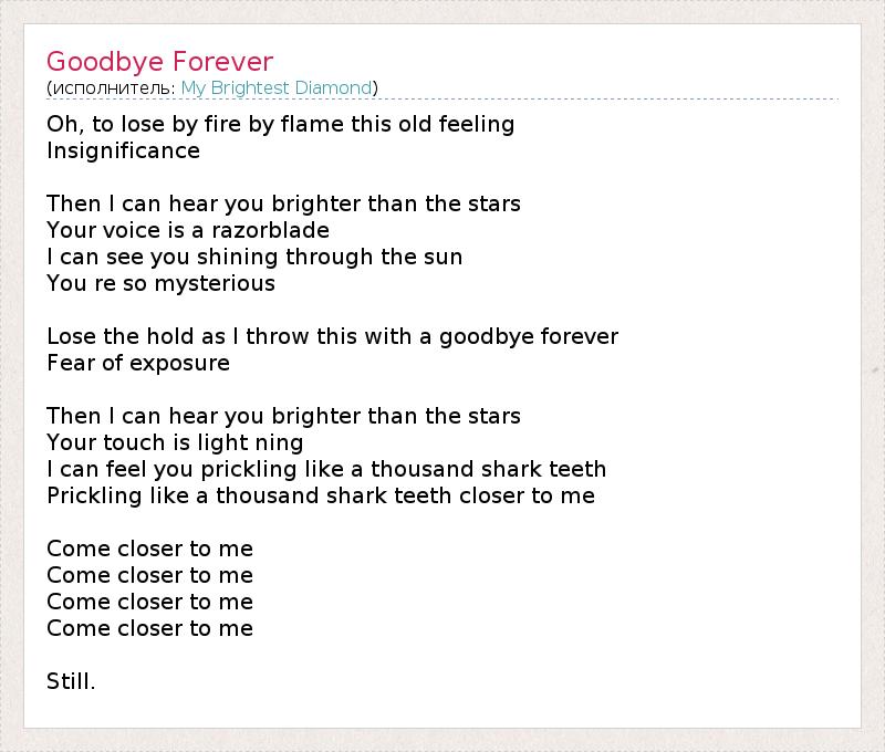 А как ты думаешь, о чем песня "Goodbye Forever" ?