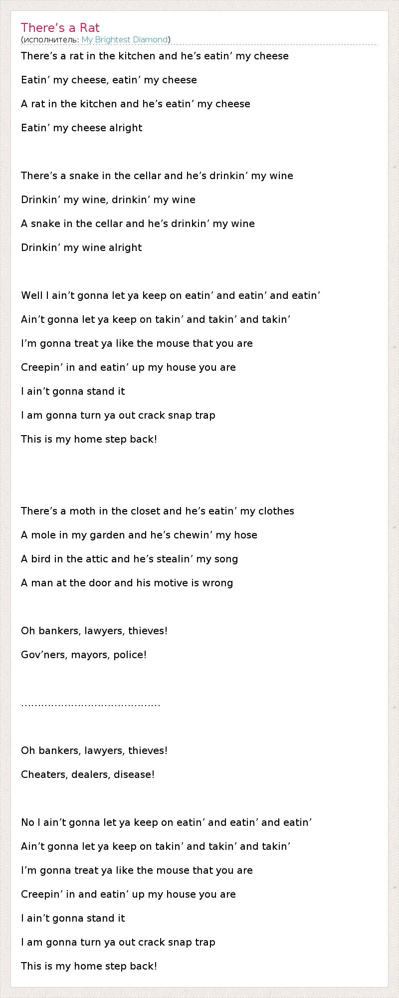 А как ты думаешь, о чем песня "There’s a Rat" ?