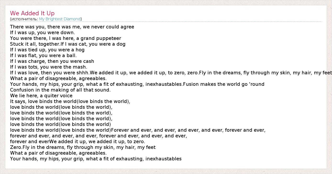 А как ты думаешь, о чем песня "We Added It Up" ?