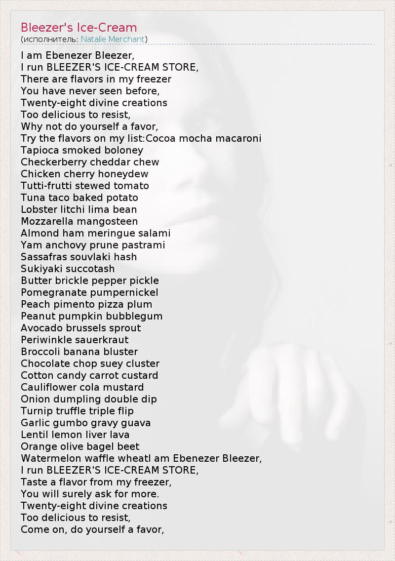 А как ты думаешь, о чем песня "Bleezer's Ice-Cream" ?