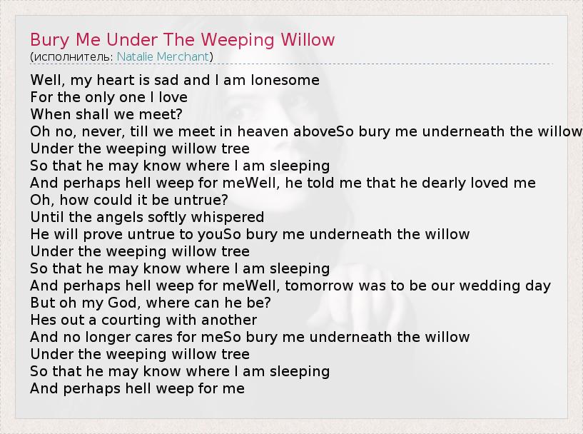 А как ты думаешь, о чем песня "Bury Me Under The Weeping Willow" ?