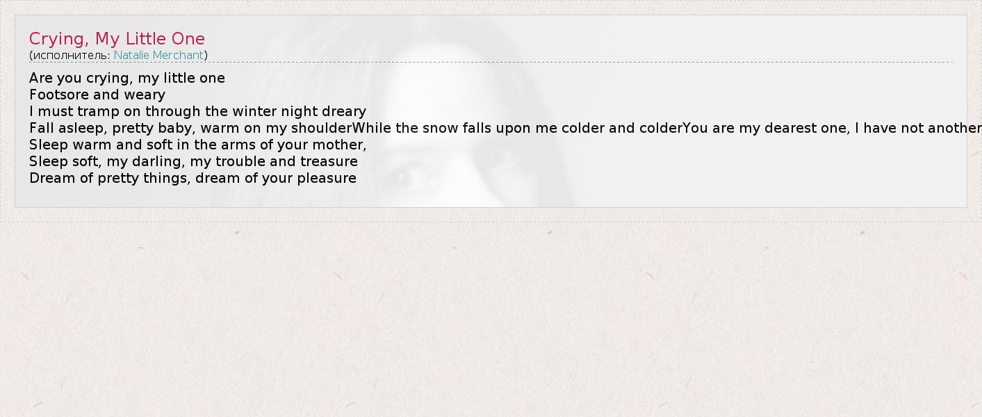 А как ты думаешь, о чем песня "Crying, My Little One" ?