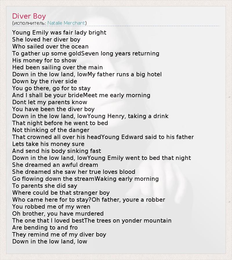 А как ты думаешь, о чем песня "Diver Boy" ?