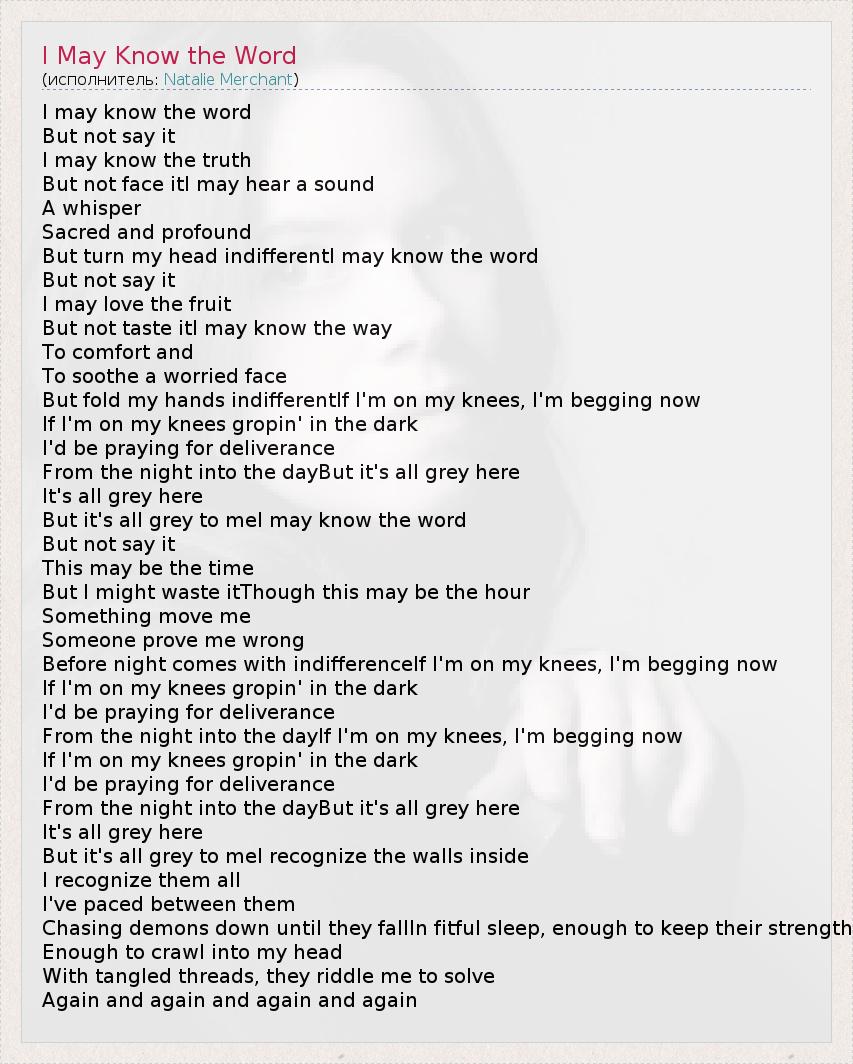 А как ты думаешь, о чем песня "I May Know the Word" ?
