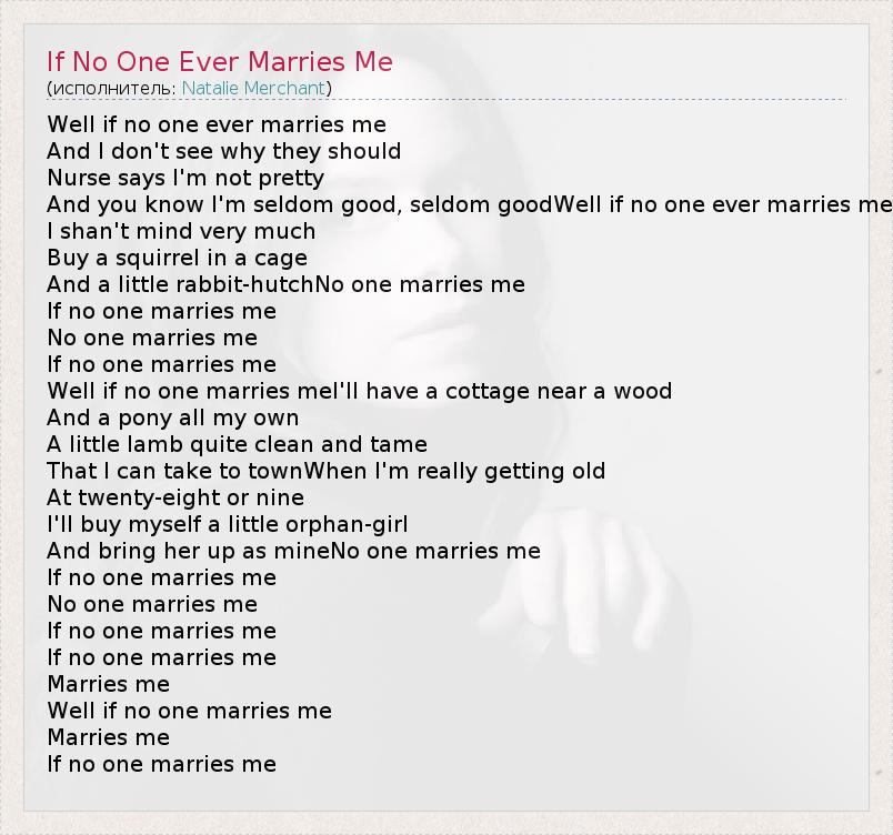 А как ты думаешь, о чем песня "If No One Ever Marries Me" ?