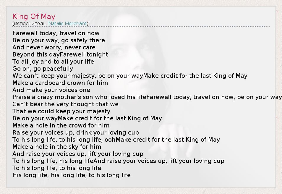 We can't keep your majesty, be on your wayMake credit for the last King of May