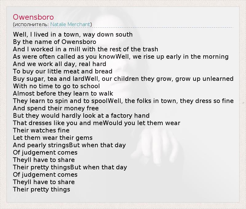 Это интересно:Американская певица и автор песен Натали Мерчант родилась 26 октября 1963 года в Джеймстауне (штат Нью-Йорк, США). Она с самого детства знакома с музыкой – ее дед играл на аккордеоне, мандолине и гитаре, а мать будущей певицы очень увлекалась творчеством The Beatles, Эла Грина и других исполнителей. Именно она в значительной мере повлияла на желание Натали заниматься музыкой. Долгое время Мерчант... продолжение