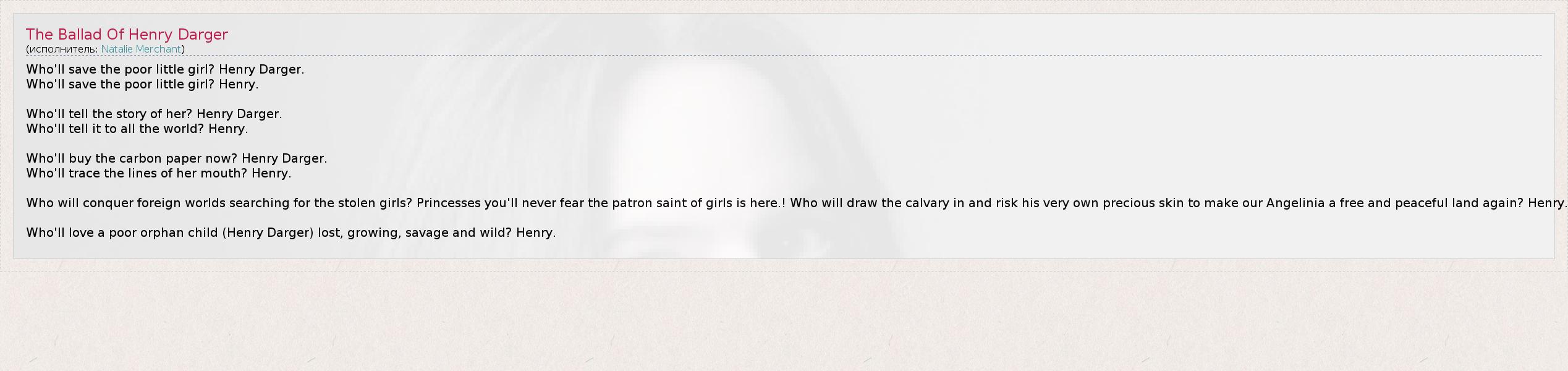 А как ты думаешь, о чем песня "The Ballad Of Henry Darger" ?