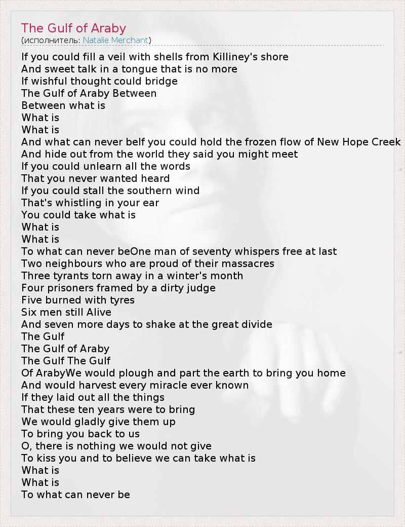 А как ты думаешь, о чем песня "The Gulf of Araby" ?