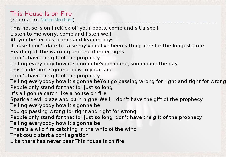 А как ты думаешь, о чем песня "This House Is on Fire" ?