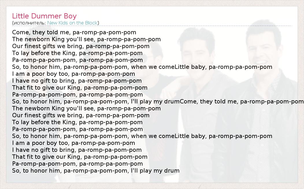 So, to honor him, pa-romp-pa-pom-pom, I'll play my drumCome, they told me, pa-romp-pa-pom-pom