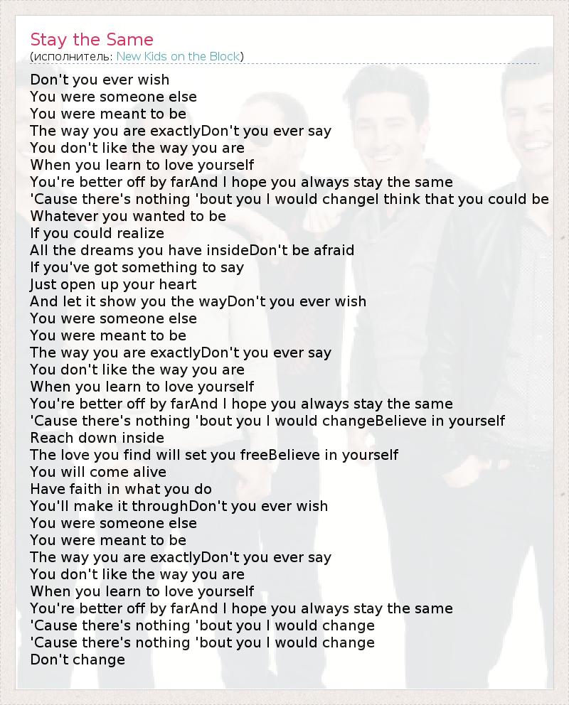А как ты думаешь, о чем песня "Stay the Same" ?