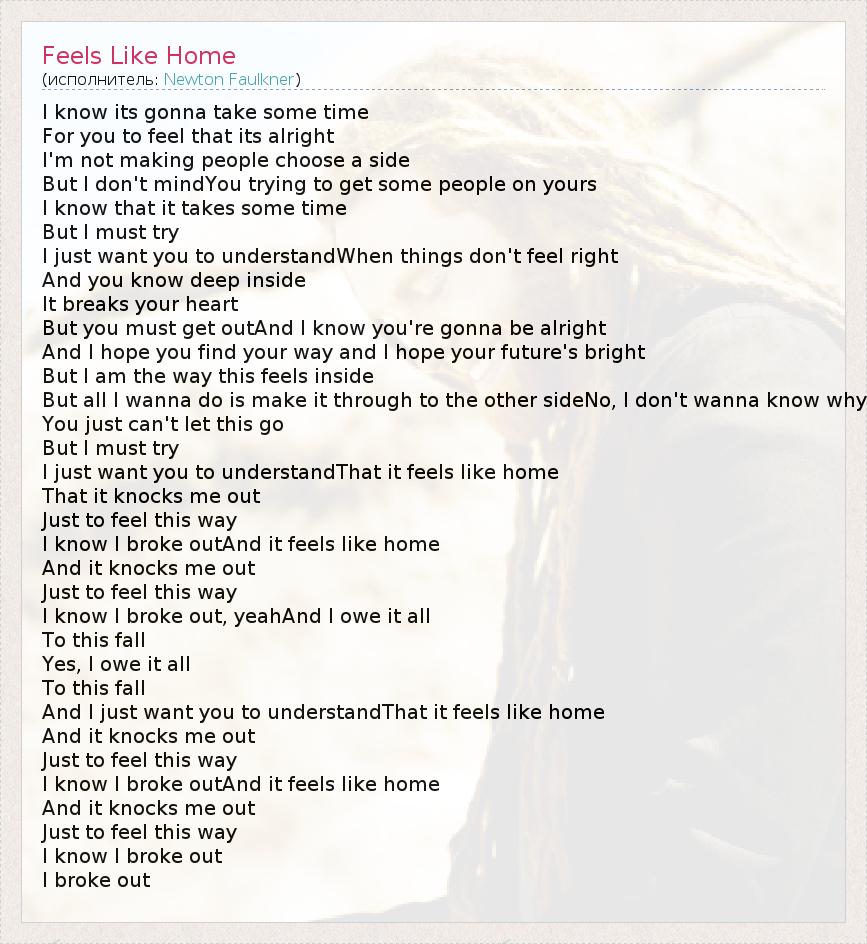 А как ты думаешь, о чем песня "Feels Like Home" ?
