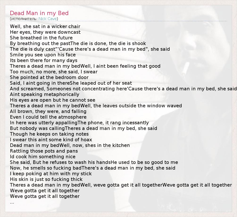 А как ты думаешь, о чем песня "Dead Man in my Bed" ?