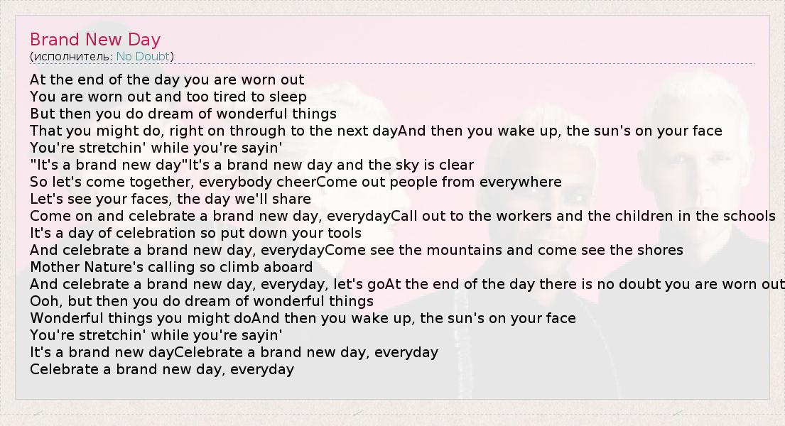 А как ты думаешь, о чем песня "Brand New Day" ?