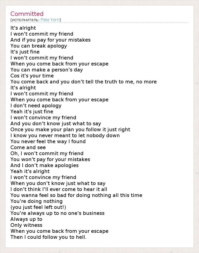 А как ты думаешь, о чем песня "Committed" ?