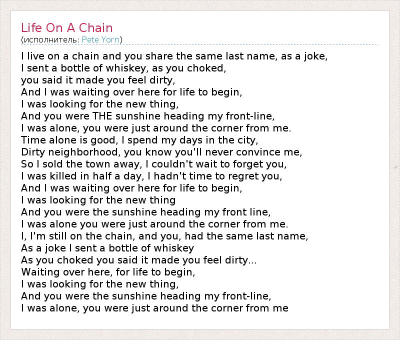 А как ты думаешь, о чем песня "Life On A Chain" ?