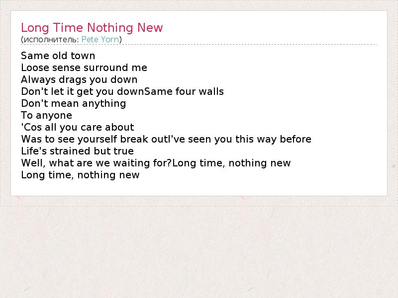 А как ты думаешь, о чем песня "Long Time Nothing New" ?