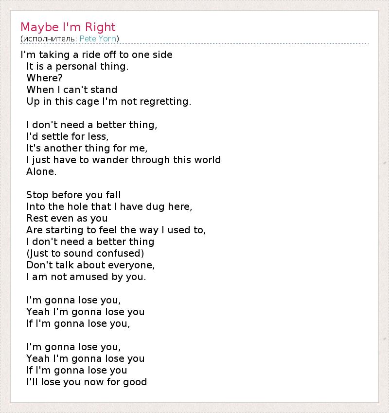 А как ты думаешь, о чем песня "Maybe I'm Right" ?