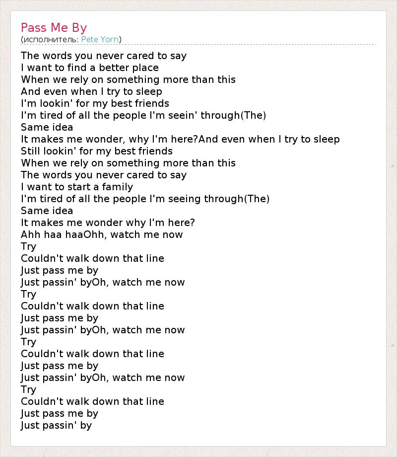 А как ты думаешь, о чем песня "Pass Me By" ?