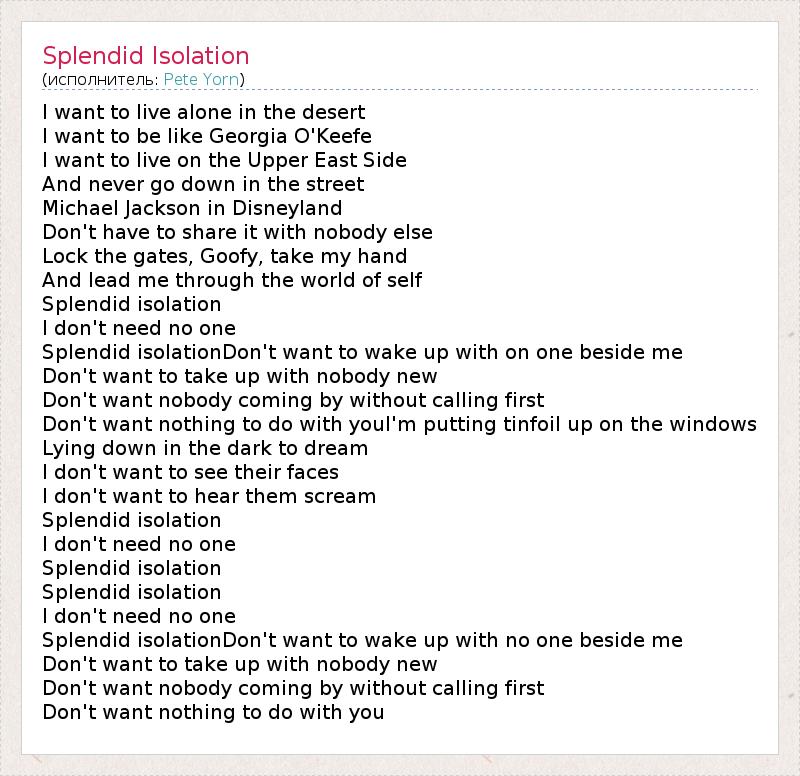 А как ты думаешь, о чем песня "Splendid Isolation" ?