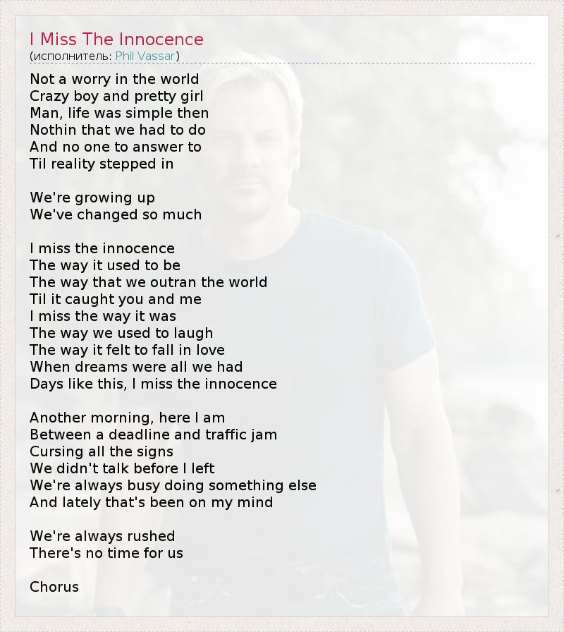 А как ты думаешь, о чем песня "I Miss The Innocence" ?
