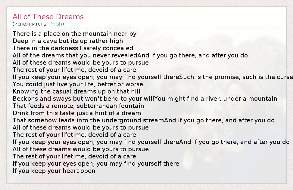 А как ты думаешь, о чем песня "All of These Dreams" ?