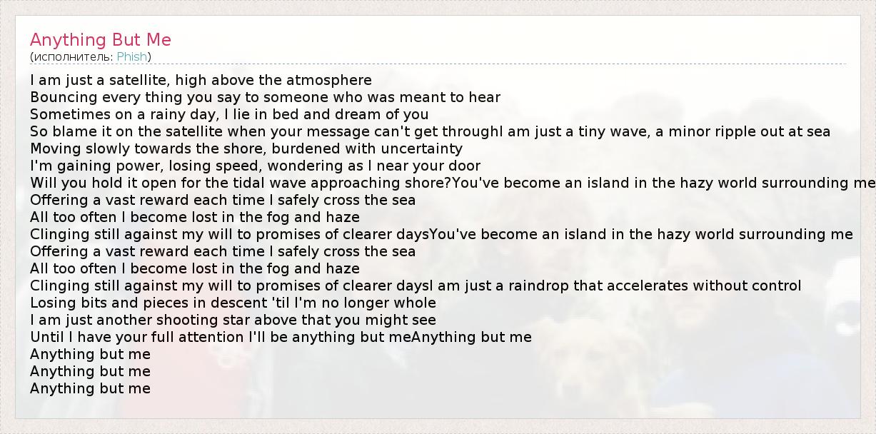 А как ты думаешь, о чем песня "Anything But Me" ?