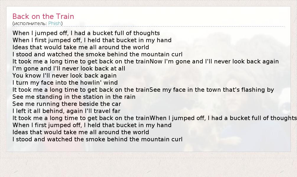 А как ты думаешь, о чем песня "Back on the Train" ?