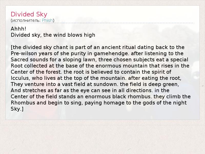 А как ты думаешь, о чем песня "Divided Sky" ?