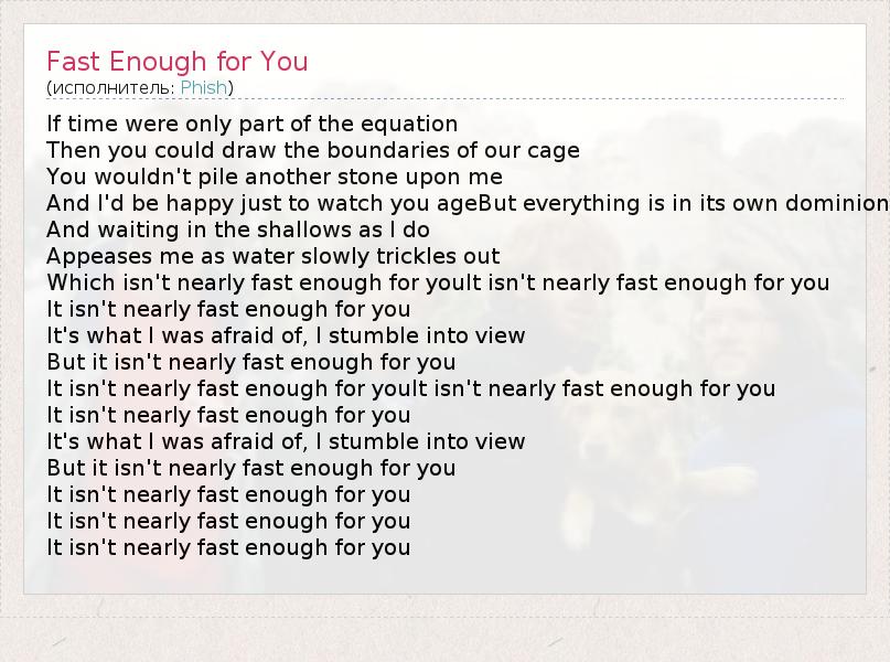 А как ты думаешь, о чем песня "Fast Enough for You" ?