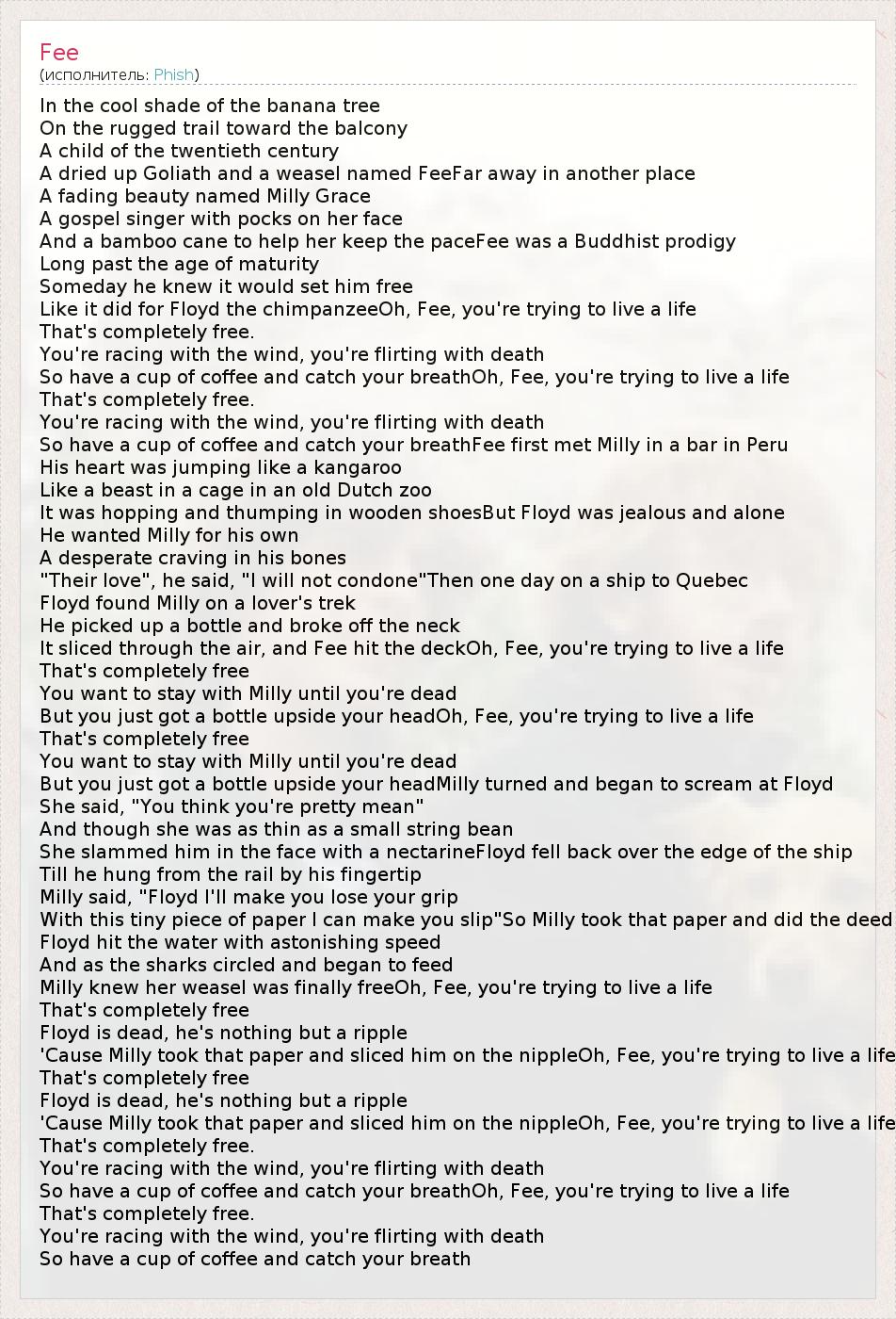 Milly knew her weasel was finally freeOh, Fee, you're trying to live a life