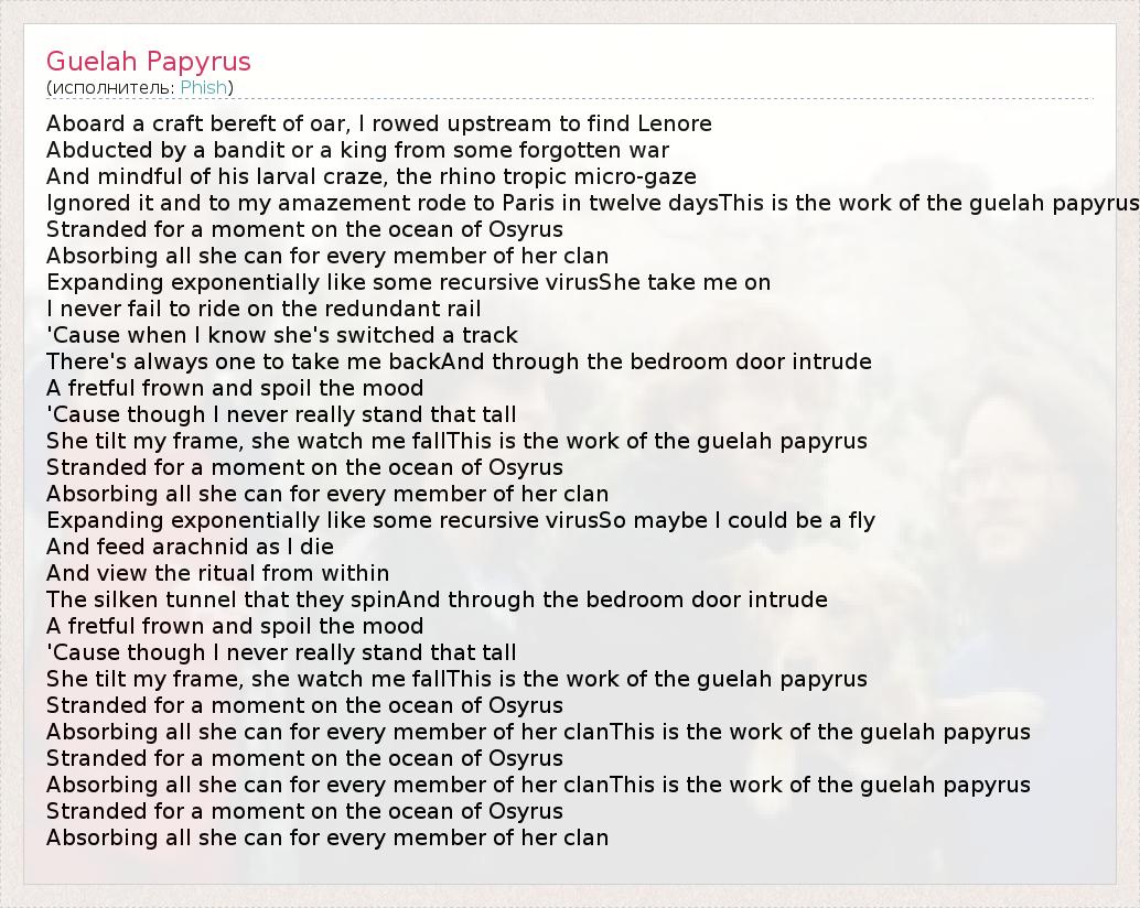 А как ты думаешь, о чем песня "Guelah Papyrus" ?
