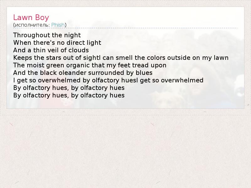 А как ты думаешь, о чем песня "Lawn Boy" ?