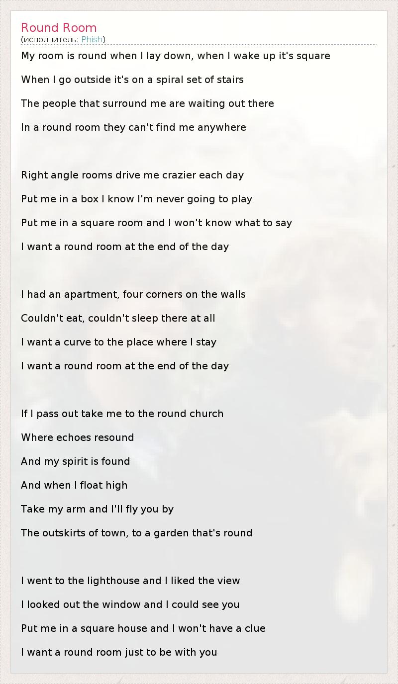 Это интересно:Phish — американская рок-группа, примечательная своими джем-сейшнами, импровизациями и постмодернистским смешением жанров. Phish была образована в 1983 году в университете Вермонта. Четыре ее участника выступали вместе 21 год, пока не распались в августе 2004 года. Их музыка содержала в себе элементы широкoго спектра жанров, и каждый их концерт был оригинальным в плане исполнения песен, порядка... продолжение