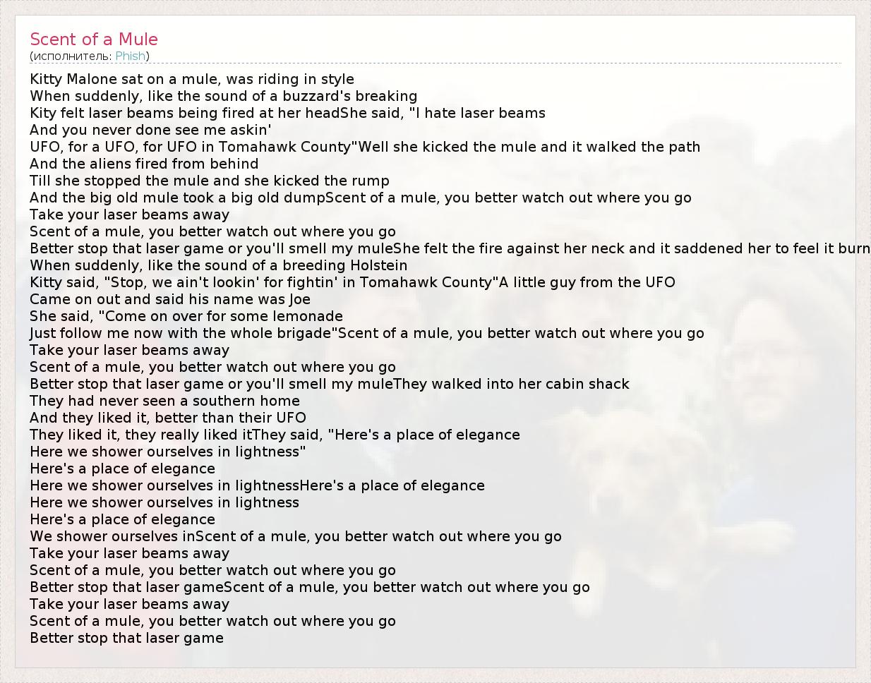 А как ты думаешь, о чем песня "Scent of a Mule" ?