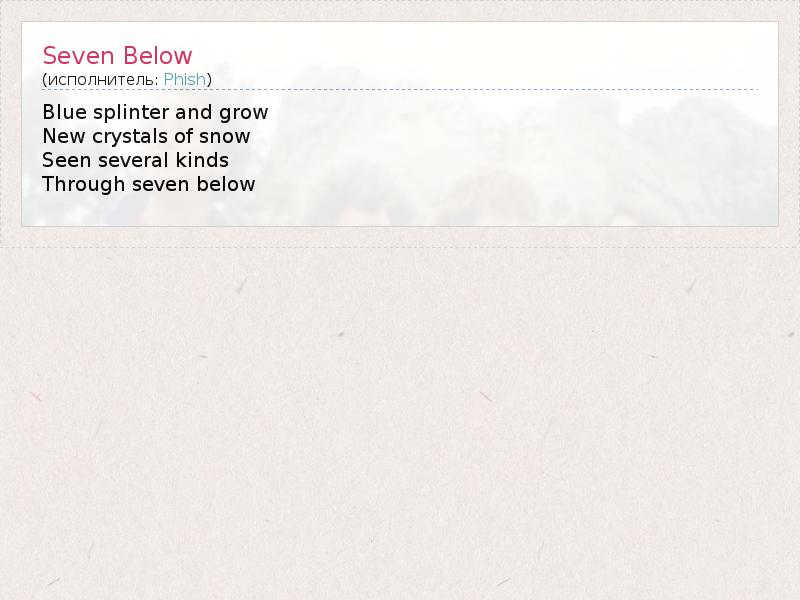 Это интересно:Phish — американская рок-группа, примечательная своими джем-сейшнами, импровизациями и постмодернистским смешением жанров. Phish была образована в 1983 году в университете Вермонта. Четыре ее участника выступали вместе 21 год, пока не распались в августе 2004 года. Их музыка содержала в себе элементы широкoго спектра жанров, и каждый их концерт был оригинальным в плане исполнения песен, порядка... продолжение