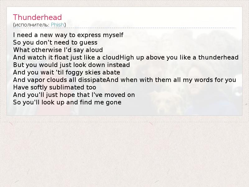 А как ты думаешь, о чем песня "Thunderhead" ?
