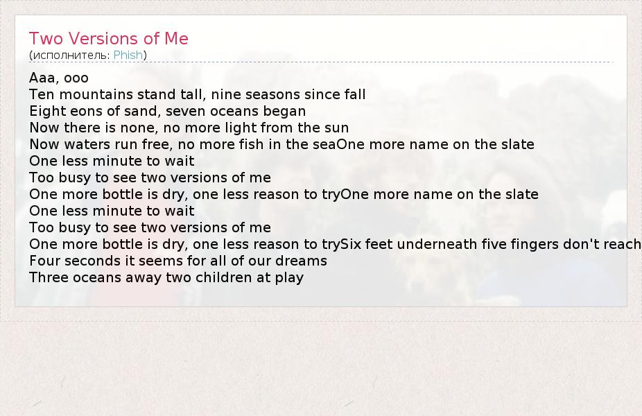 А как ты думаешь, о чем песня "Two Versions of Me" ?