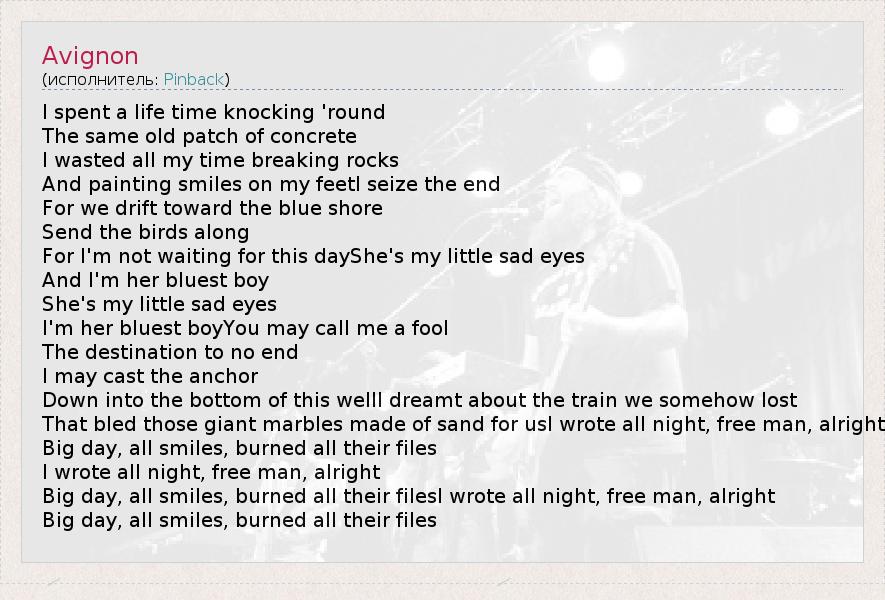 А как ты думаешь, о чем песня "Avignon" ?