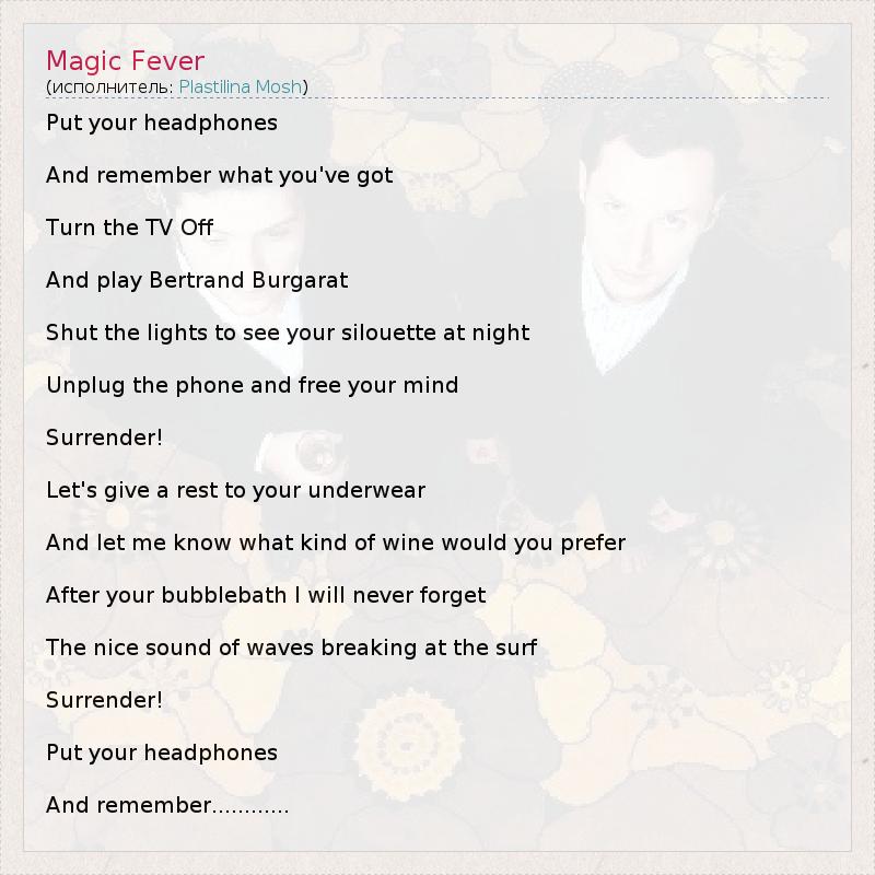 А как ты думаешь, о чем песня "Magic Fever" ?