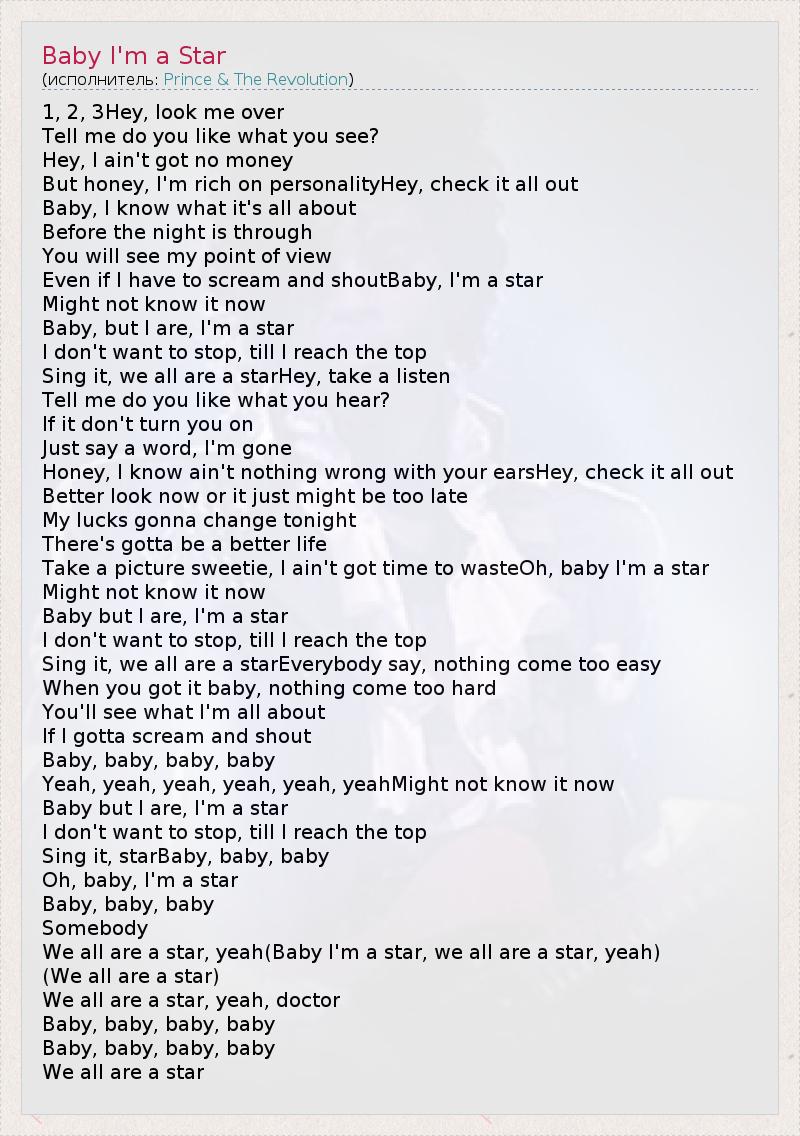 А как ты думаешь, о чем песня "Baby I'm a Star" ?