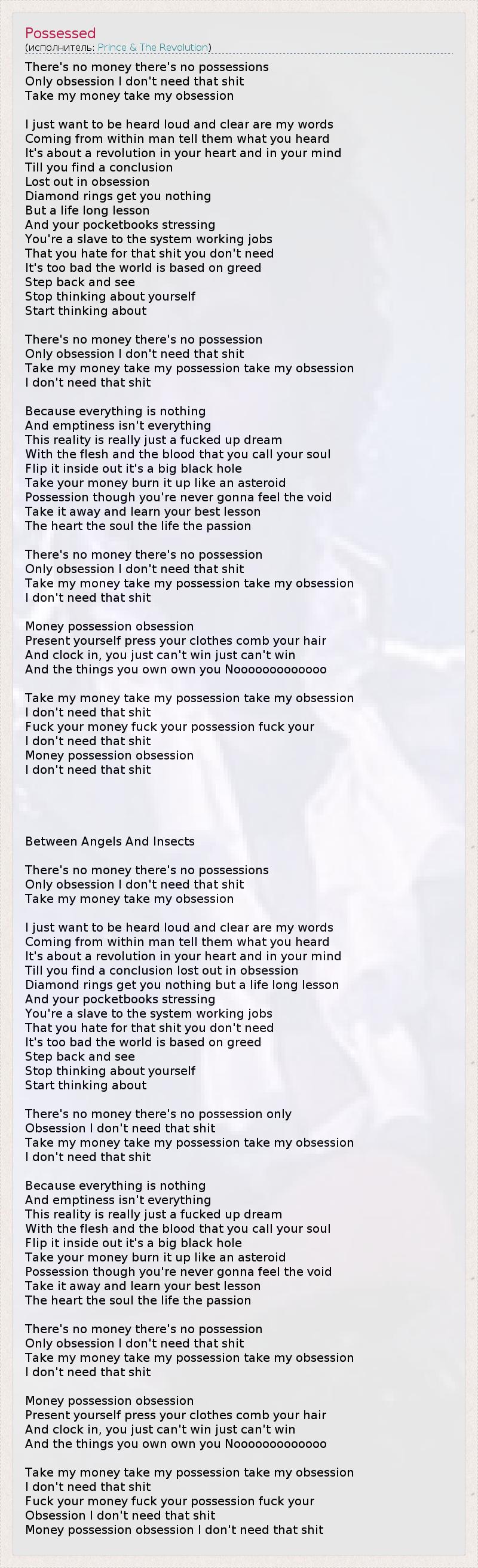 Take my money take my possession take my obsession